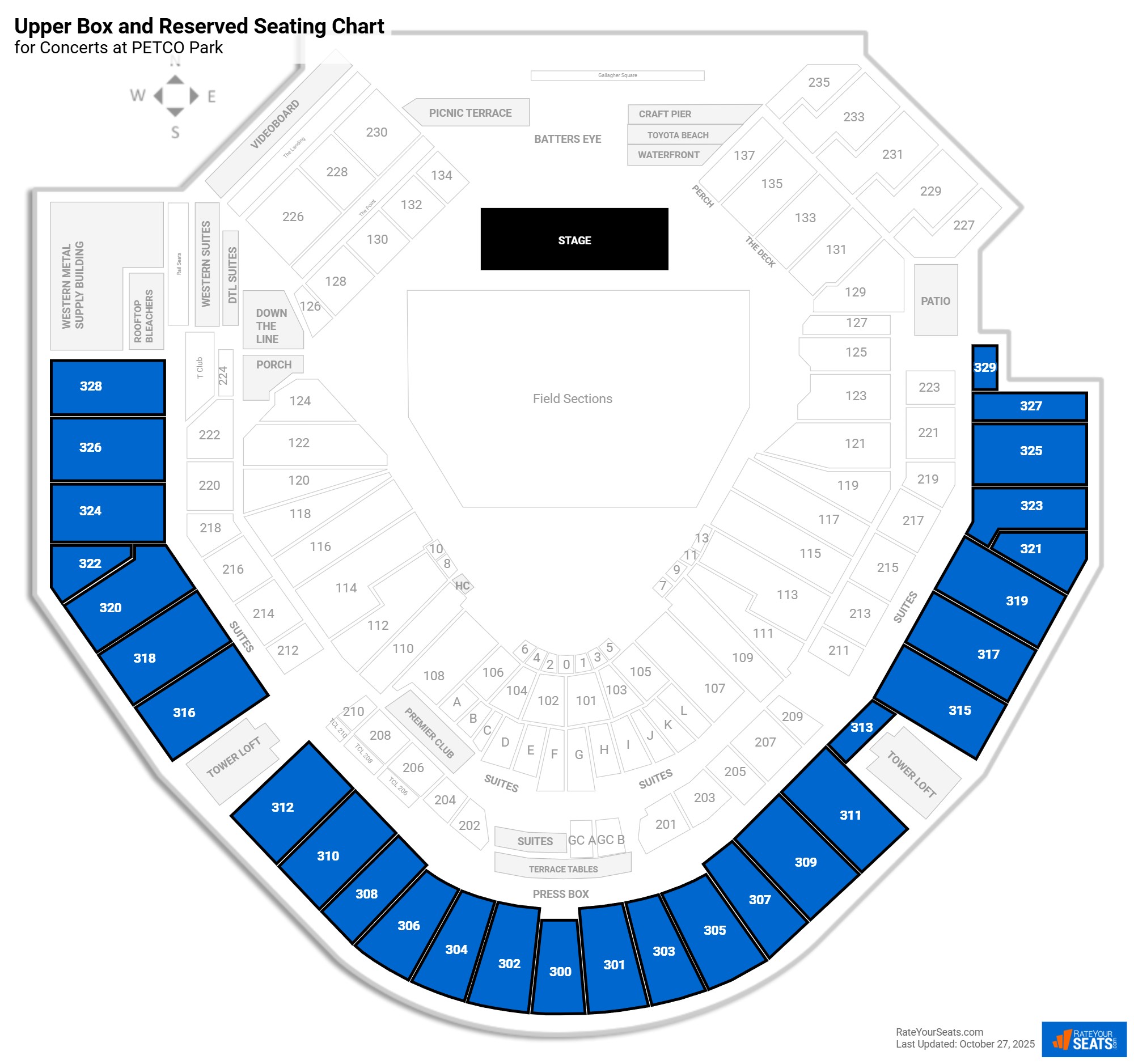 Upper reserved seats will be in any row higher than Row 6. These seats are typically among the cheapest ticket options for any event at Petco Park due to their distance from the field.
