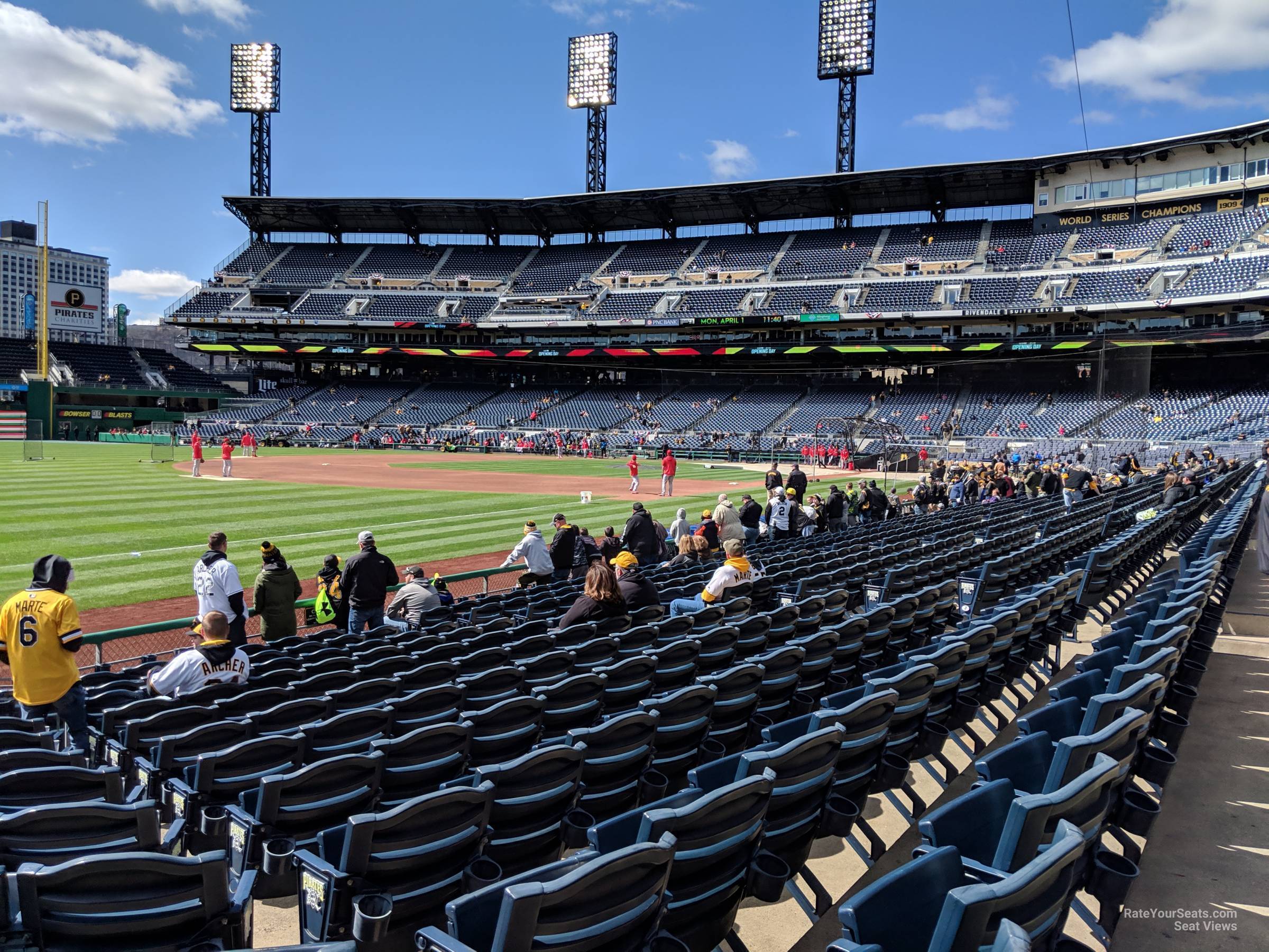 -Ranging from the corner bases to the foul poles on the Field Level, these sections offer the more affordable option for fans who want to be as close to the field as possible. Be prepared for more sun during midday games though as there is very little structure to provide shade. With just 8 to 13 rows in each section, the seating areas are small but fans will have to walk all the way to the top of the 100 level to reach the concourse. Scoreboard watchers will want to opt for seats on the first base side to get a better view of the videoboard, while those on the third base side will get a better vantage point to the Pittsburgh Skyline. Sections 30-32 near the left field corner have a great seating angle towards the infield making these seats a great option for those looking for a comfortable viewing experience close to the field. The only downfall here is the near 180 degree head turn to see the videoboard.