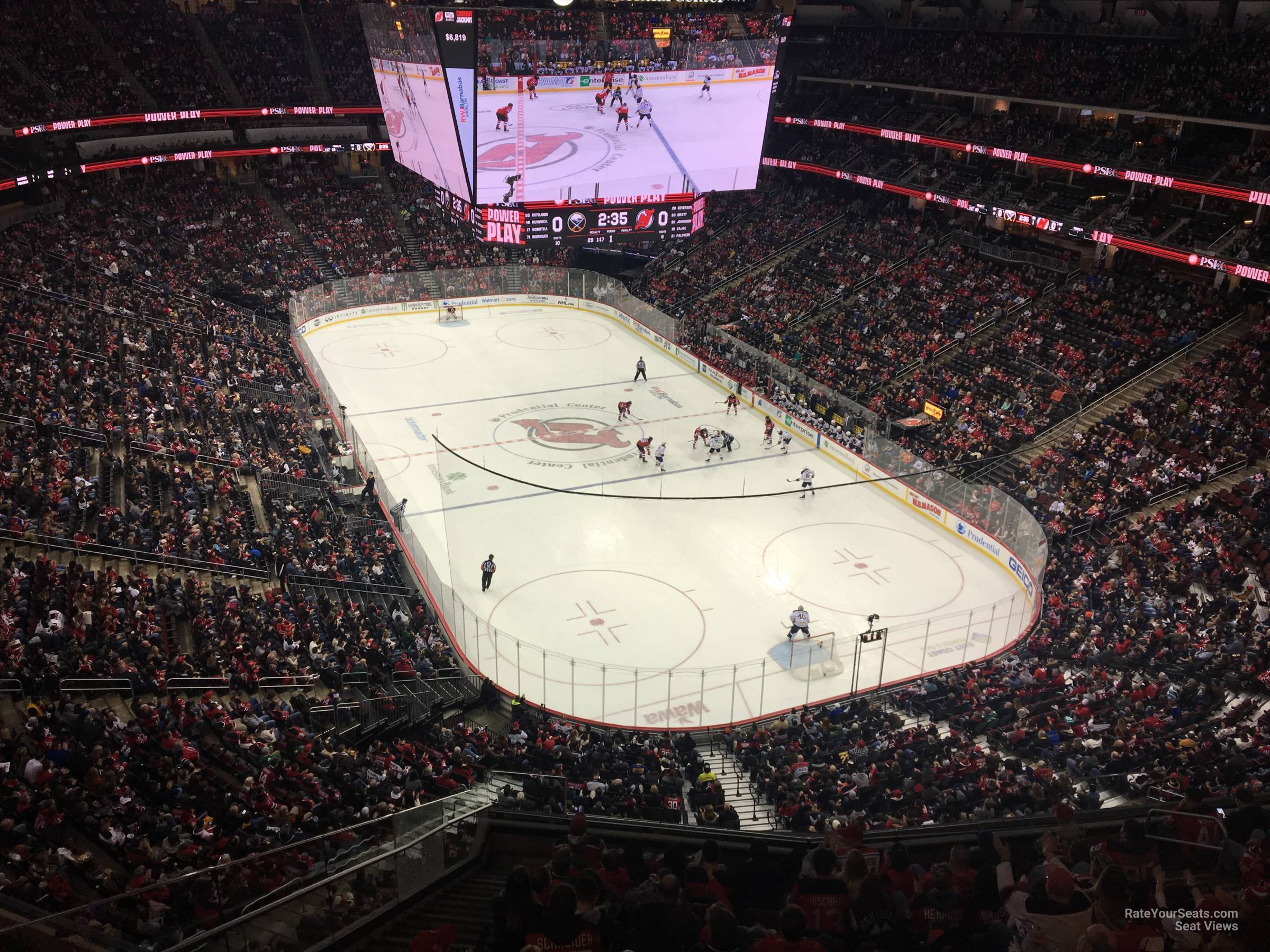 -Unlike the Mezzanine Level, the Balcony Level End sections are separated from the lower seating bowl by just a single level of Suites, leaving many of the seats closer to the ice than the Mezzanine Sections on the sides of the Prudential Center. From behind the nets and in the corners, fans will have a unique perspective not often shown on television and a good viewing height to follow the action on the ice. The Diablos Fan Club sits at the top of Section 122, making it a great place to be for fans who like to make a lot of noise for the home team during the game. More Balcony Notes Each section has 14 rows with row 1 at the frontThe entrance to each section is at the top row Reserved Table Seats are available at the top of some sections The Devils shoot twice towards Balcony sections 101-107