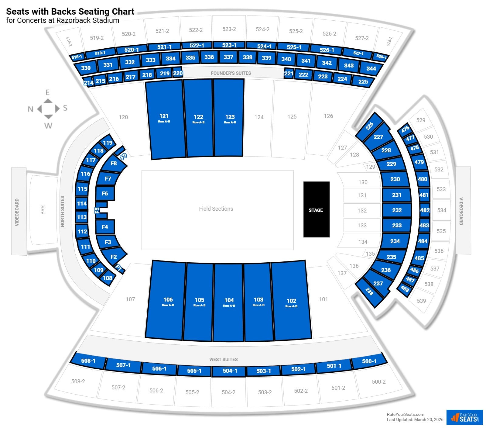 Razorback Stadium Seats with Backs
