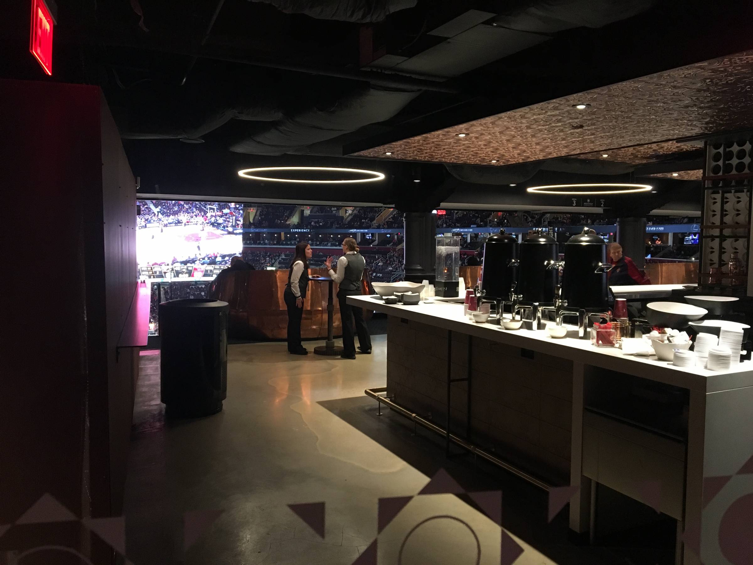 For Cavs games this arena is known as the Westfield Champions Club. During NBA games, guests will enjoy an all-inclusive experience in the club lounge directly behind the seats (for non-Cavs games, amenities vary by event).
