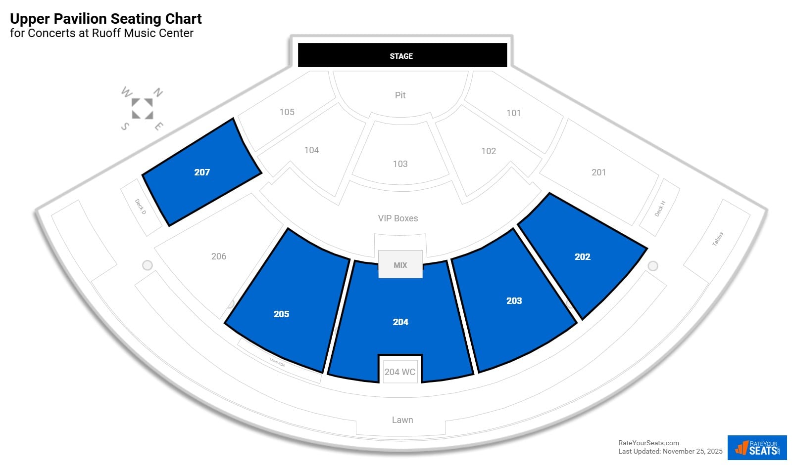 If you're looking for a reserved seat at an affordable price, the Upper Pavilion sections at Ruoff Music Center are the way to go. The views are further back than the Lower Pavilion, but will have a much more affordable price-tag.