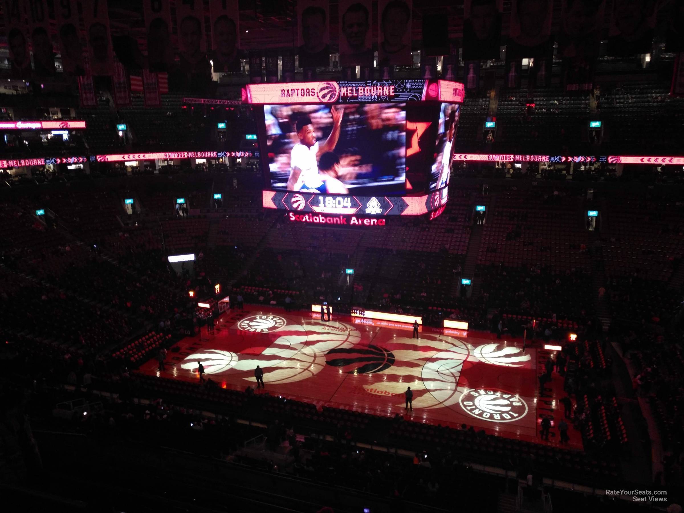 -Also commonly known as the Balcony sections, these seats provide some of the best views from the upper seating tier at Scotiabank Arena. You won't be able to avoid the feeling of being high up in the arena, however the sideline positioning helps keep both baskets comfortably within sight allowing you to easily follow the action at either end of the court. Seating begins with Row 1 at the front, and ends with Row 19 at the very back. Entry tunnels are located just above Row 3, and with the walkway aisles being steep we recommend searching for tickets in Rows 8 and lower to secure the best views and easiest access. Section 320 is the closest option to the Raptors team bench, but from this height we prefer sitting at the opposite sideline (Sections 308-310) where you can watch the players faces on the team benches.