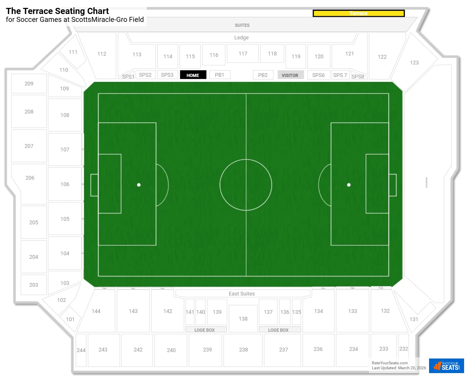 The Terrace is located in the highest portion of ScottsMiracle-Gro Field Field, positioned above the suite level.