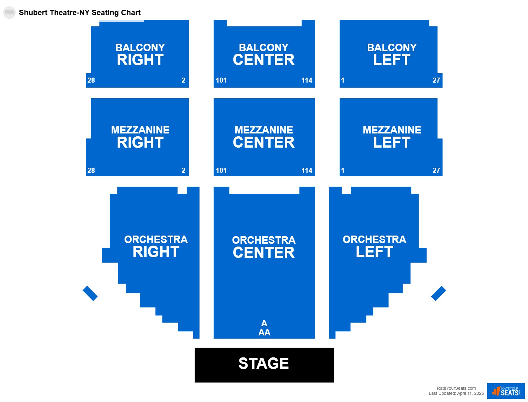 This seating chart represents the seating layout for most events at Shubert Theatre-NY. Click the map and then select your event to use an interactive map for your exact event.