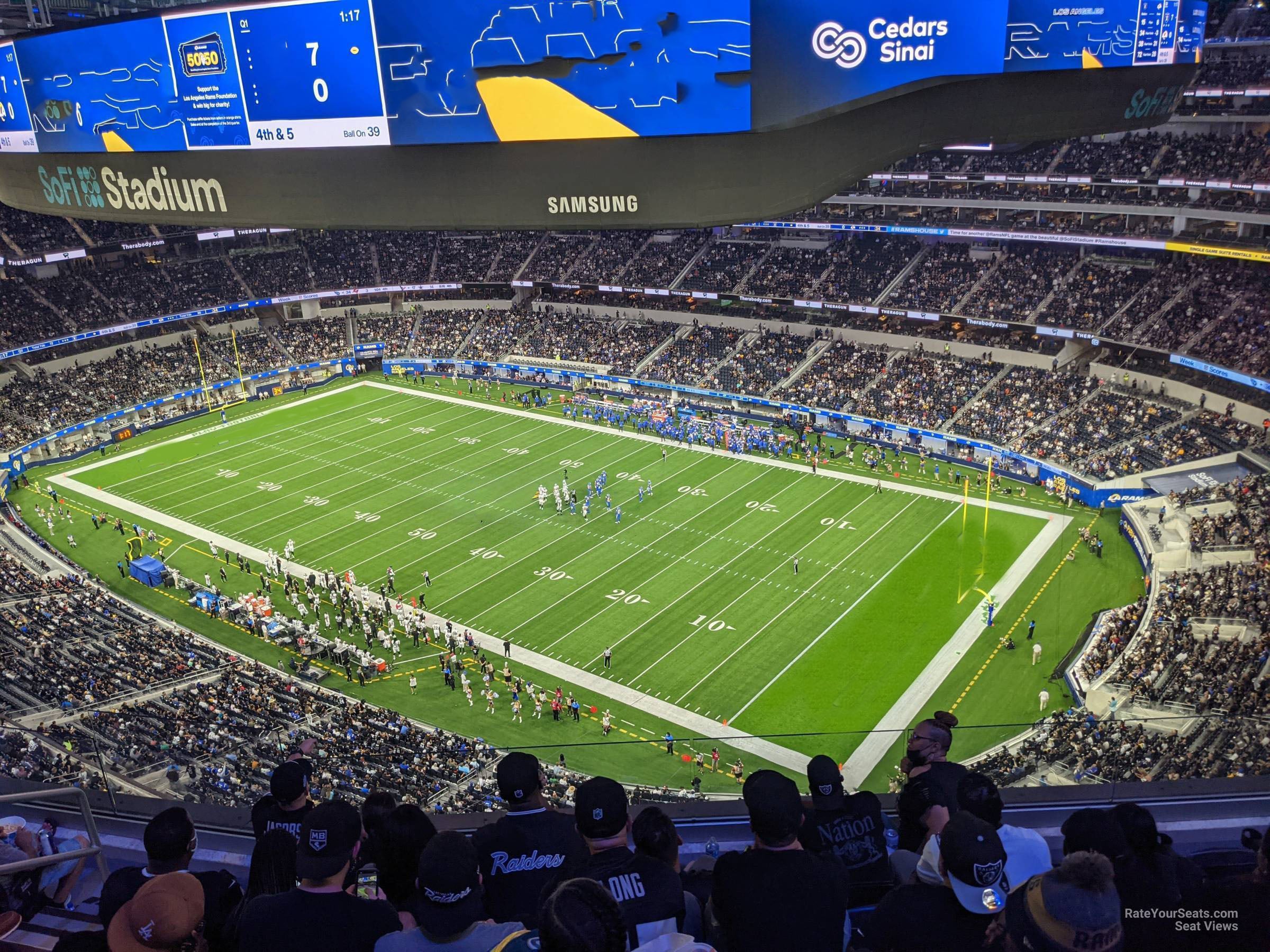 -The Upper Level Reserved Corner sections at SoFi Stadium will have some of the best value seats. The 500 level corner seats are some of the most affordable tickets for a Rams or Chargers game. Also, each section in the 500 level will have 22 rows of seating, making these some of the largest reserved sections at SoFi. The 400 level corner seats will be one tier lower than the 500 level corner seats, but both levels will offer similar views. Furthermore, the 400 level corner seats are some of the smallest sections with only 4-7 rows of seating. Despite being so far from the field, the heightened elevation and angle will allow fans to get great sight lines of all action on the field, but it will be difficult to make out specific players.