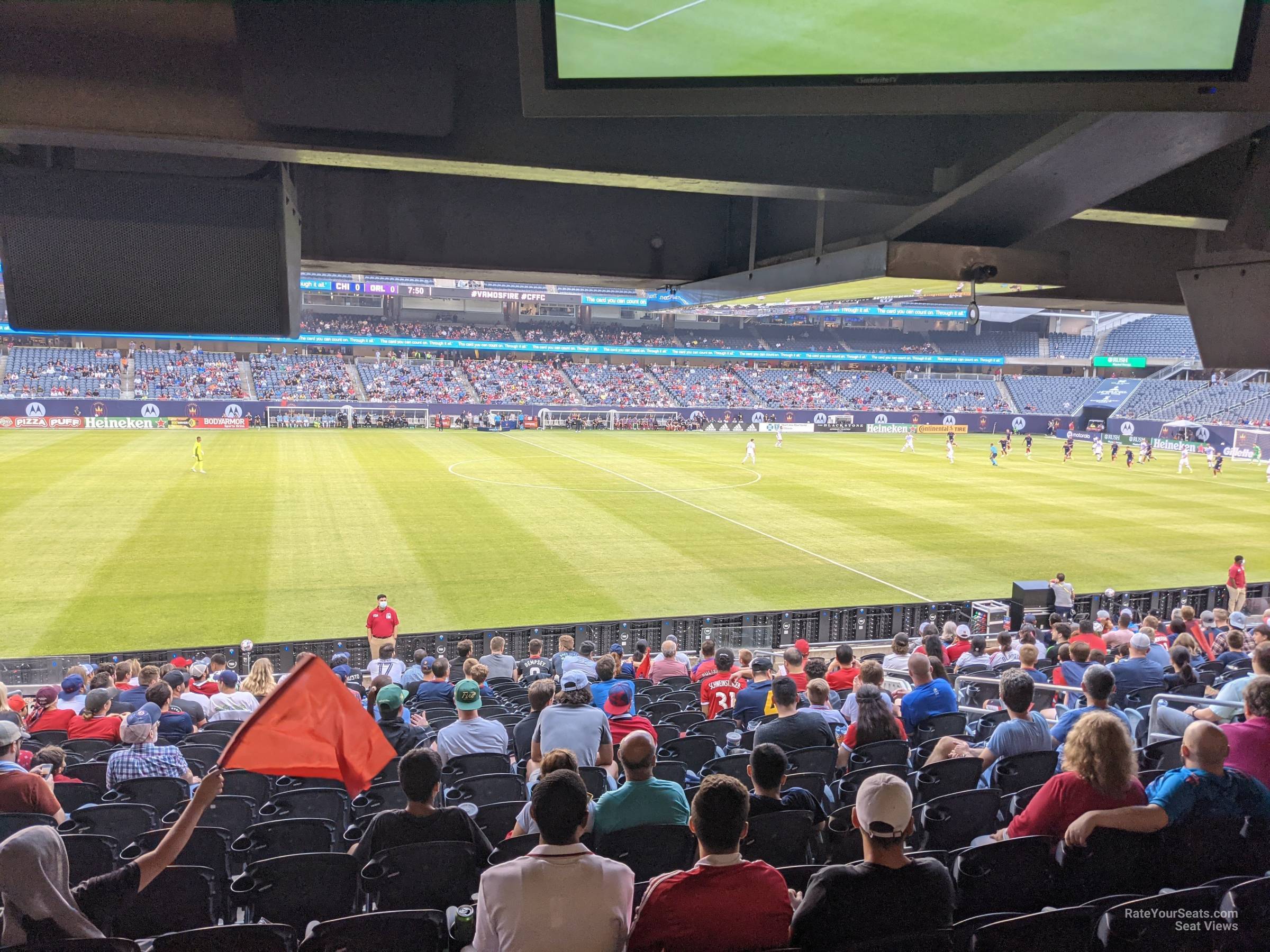 -Lower level sideline seats are just about as close as any fan can get to see the Chicago Fire at Soldier Field. Fans sitting on these seats will have great views although they won't be quite as close as the seats at the Fire's former home in Bridgeview. Sideline sections will have between 19 and 20 rows in each section. Each row will have around 17-18 seats. Seat numbers will start with seat one on the left when looking at the field. Fans will access their section from the concourse at the top so fans sitting in the lower rows will have the longest walks to restrooms and concessions.