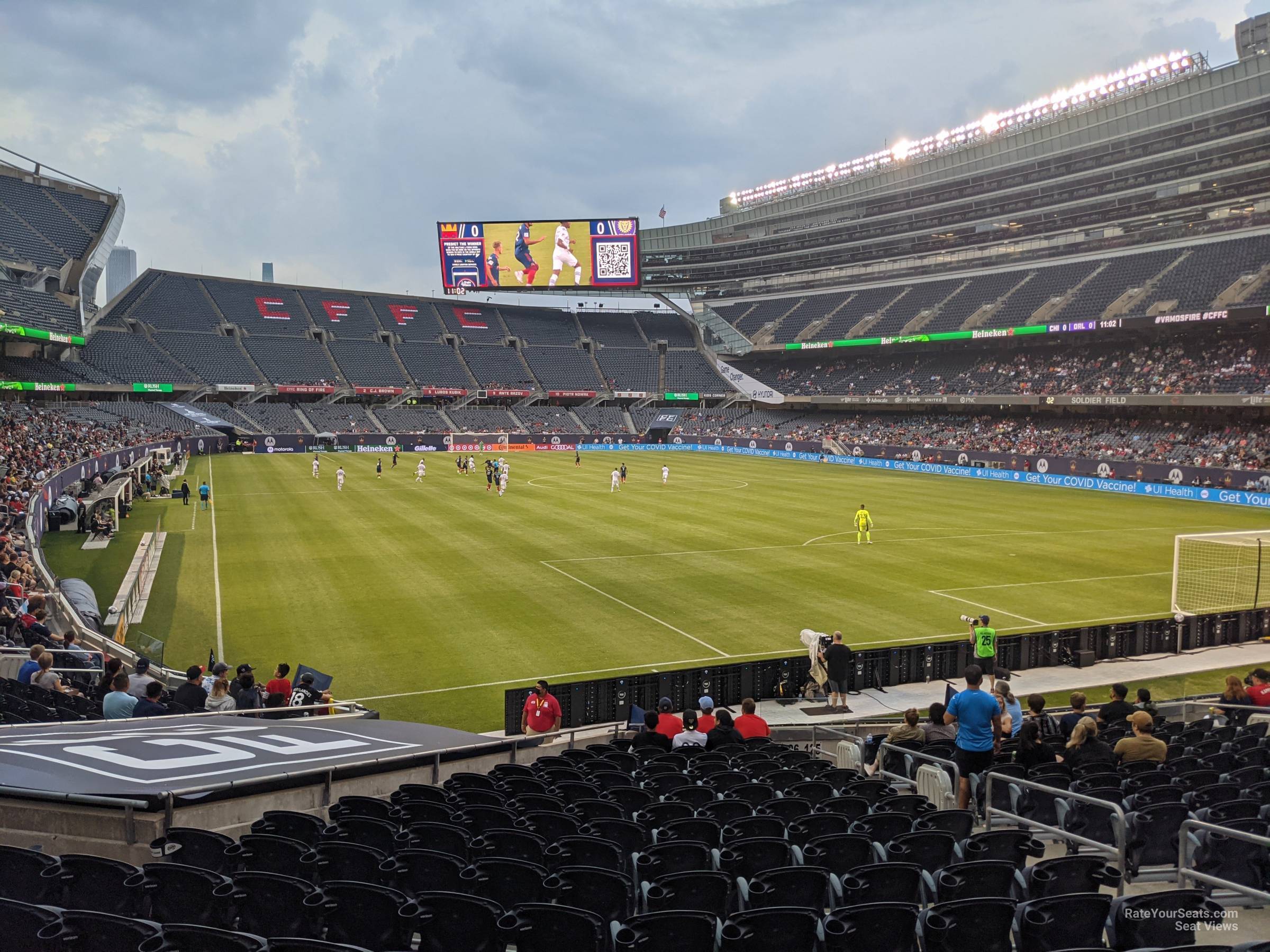 -Lower corner sections are the best place to get an up close look at corner kicks at Soldier Field. The experience at a Chicago Fire game can vary greatly depending on which corner you choose. Corner sections on the south end of the stadium (117-120 and 125-128) are next to the supporters section and lead to a much louder and rowdy atmosphere. North corner section will be calmer and better for families. Each section has 19 rows and will be uncovered. For spring and summer games be aware of the forecast and come prepared for any rain or sun.