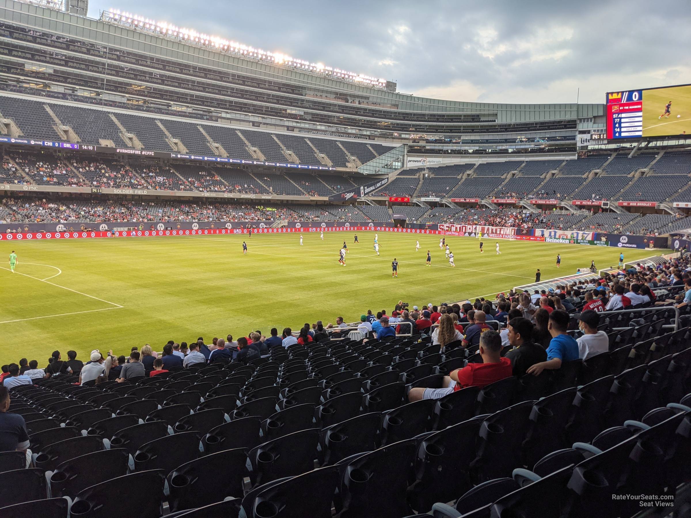 -Lower level sideline seats are just about as close as any fan can get to see the Chicago Fire at Soldier Field. Fans sitting on these seats will have great views although they won't be quite as close as the seats at the Fire's former home in Bridgeview. Sideline sections will have between 19 and 20 rows in each section. Each row will have around 17-18 seats. Seat numbers will start with seat one on the left when looking at the field. Fans will access their section from the concourse at the top so fans sitting in the lower rows will have the longest walks to restrooms and concessions.