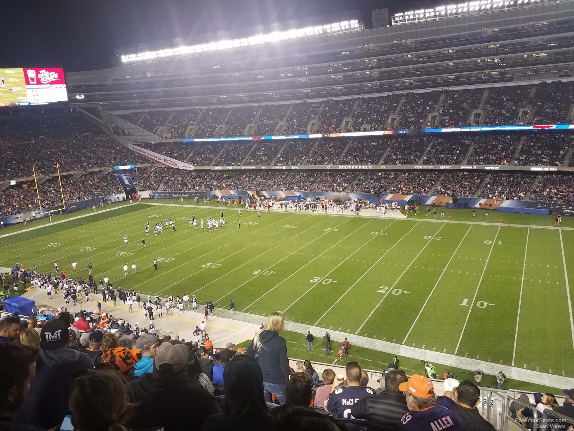 -Located at the front of the upper seating deck on the west sideline, the 300 Level Grandstand sections offer great value for fans that want a sideline view at Soldier Field. As the sections here provide complete overhead coverage for the 200 level Media Deck seats below, they extend close to the field for great views (especially in Sections 335-339 which are right near midfield). With just 15 rows of seating in most sections, fans here will never be too far from the concourse for trips to the restrooms and concessions. Handicap accessible seating is also available in the top rows of Sections 332 and 336.