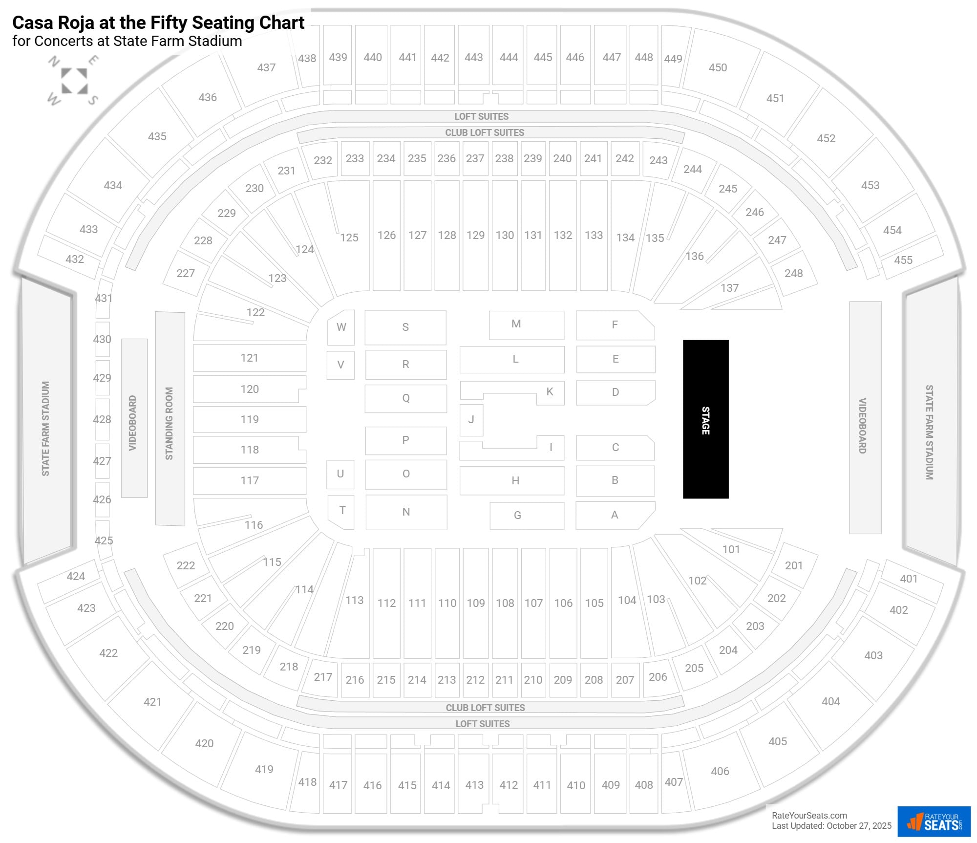 Casa Roja at the Fifty offers an ultra-premium experience at State Farm Stadium, featuring prime seats right at the 50-yard line. Located beneath sections 129-130, this exclusive club pairs exceptional views with access to a sophisticated underground hospitality space.