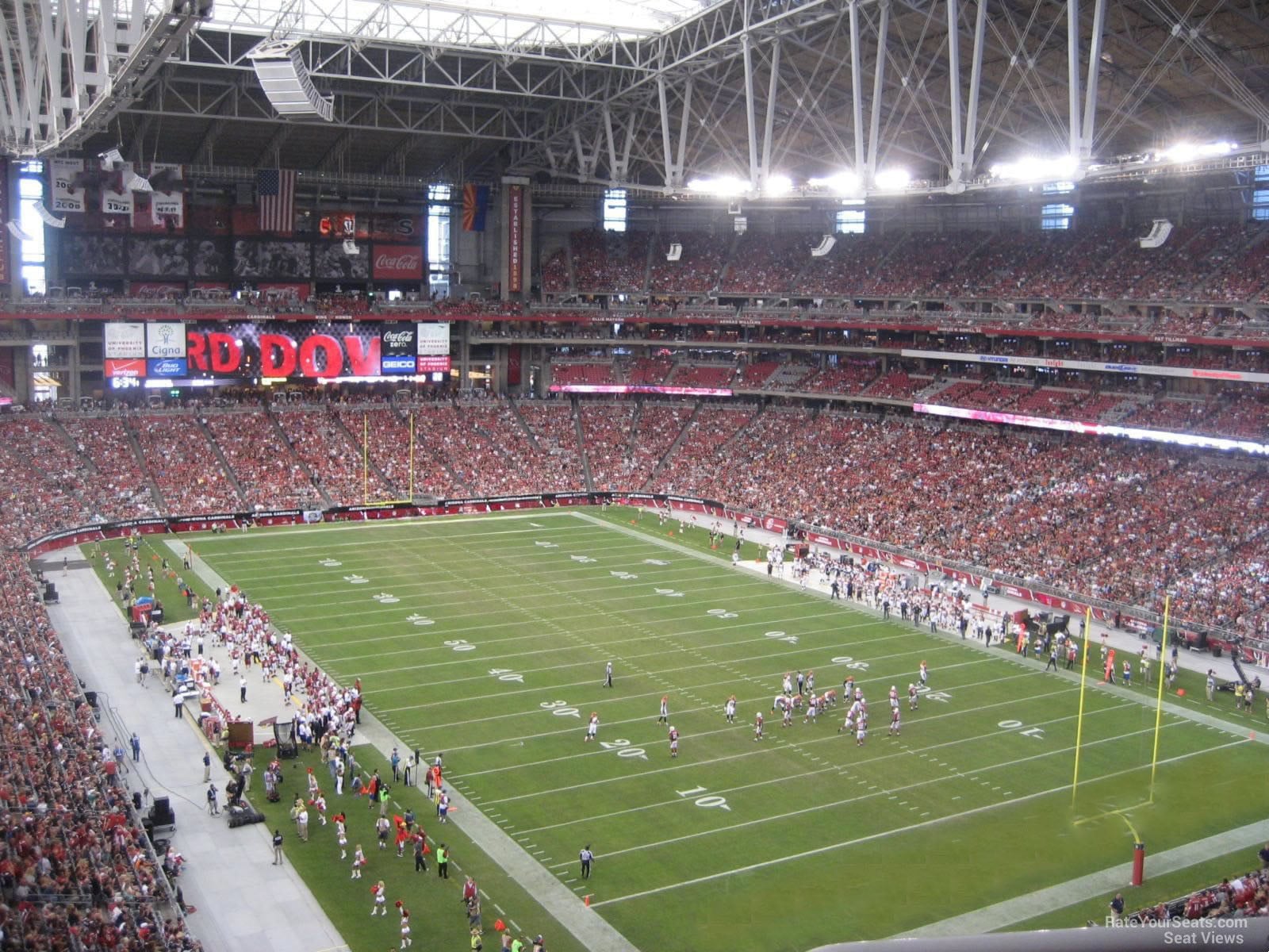 -Terrace Level Corner sections are the furthest of any from the field of play, but are the best place to find cheap tickets at University of Phoenix Stadium. Fans can expect unique diagonal views of the field with decent sight lines to the near endzone, but the action will seem very far as the ball moves to the other side of the field. Due to the far off perspective, fans are advised to look for seats in the north corners before considering the south corners, as the fans in the south will also have difficult views of the large videoboard which sits above and behind the south endzone. Terrace level corner sections feature 23 rows of seating with row 1 being closest to the front of the section, and row 23 the furthest.
