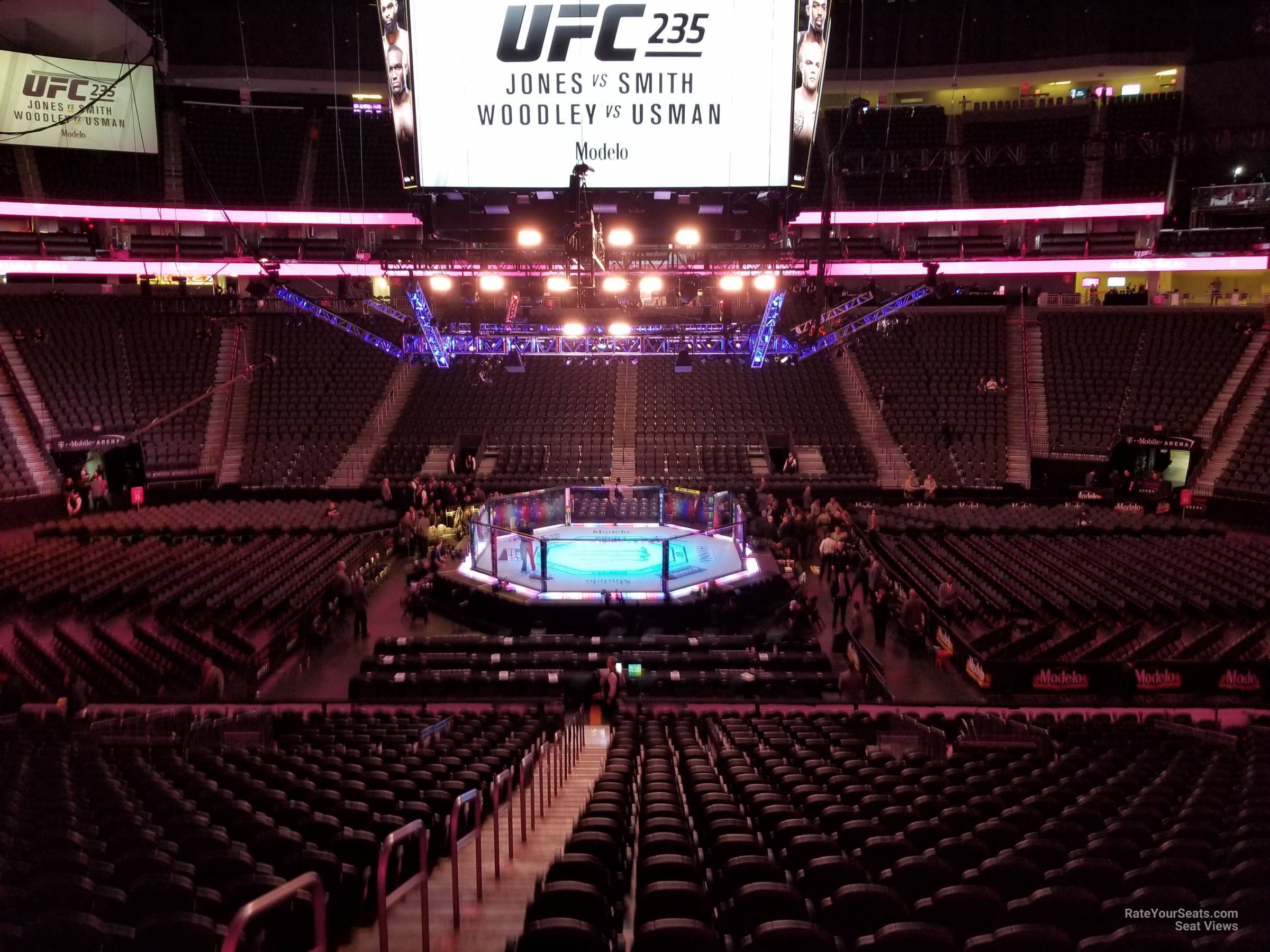 -The Main Concourse Sides at T-Mobile Arena offer some of the best views for fighting events. With 30 rows in each section there is plenty of seating in these lower level sections. The lower rows will give you a view that is almost level with the ring, and if you are at an MMA event you will have to watch the fight through the cage. For the most optimal views we recommended sitting in the higher rows so you can look into the ring. Furthermore, the cage links do not hinder your view as much when sitting in higher rows.