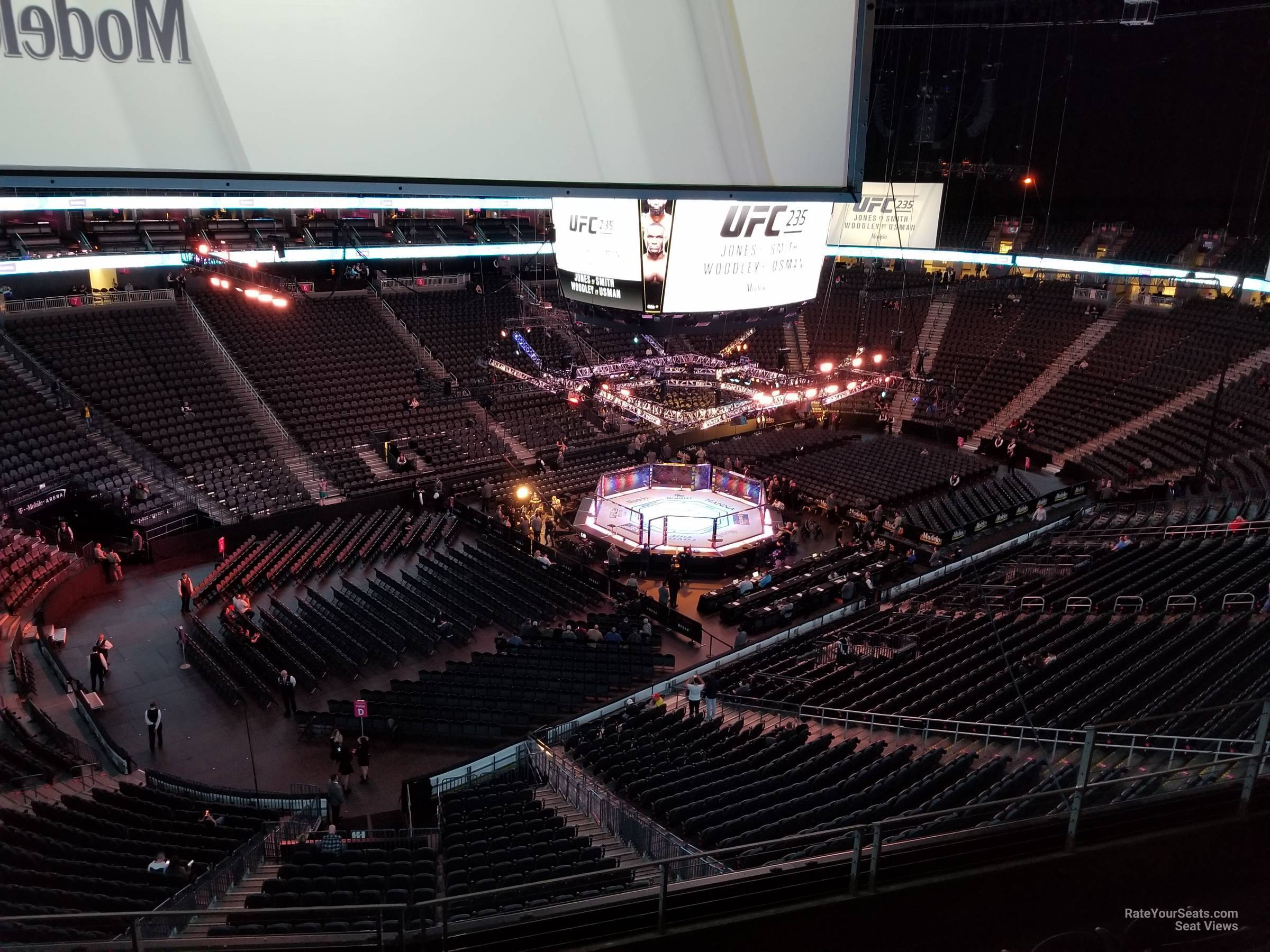 -Upper Concourse Corner seating in the 200 level of T-Mobile Arena comes with the same issues as center seating: Steep stairs and railings at the front of each section. When buying tickets in these sections, carefully consider your priorities. If you have issues walking down steep stairs or simply want to be close to restrooms and concessions, choose a seat in the highest possible row. Your view will be severely compromised, but amenities will be more accessible. In the corner sections for fighting events, T-Mobile Arena has huge projection screens above these sections to offer even more screens to watch the fight in the upper level. However, these projection screens can obstruct your view, especially if you are sitting in the upper rows, so that is something to keep in mind. If you are prefer to be a bit closer to the action, tickets at the front of these sections are far closer to the ring than the steep upper rows. Just be careful about sitting too low down - the railings at the front of each section are highly disruptive. We recommend avoiding the first four rows (A-D) in favor of something with a cleaner sight line.
