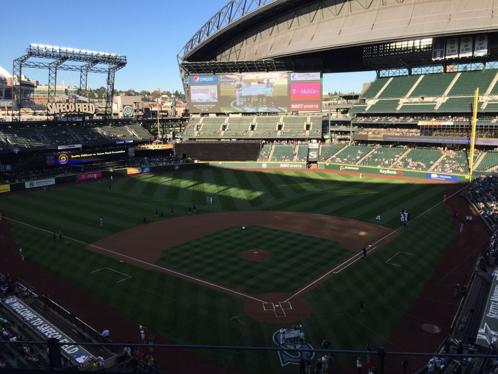 -On the T-Mobile Park seating chart, the View Level is made up of sections 306-347. These are typically the cheapest tickets for a Mariners game, but guests can also find some outstanding views of the game and the surrounding area. View Level sections have 25 rows of seats with an entrance at row 5. We're a big fan of rows 1-4 where you'll get the best views and be just below the section entrance. Infield Sections Fans on a budget will enjoy infield seating in the upper deck at T-Mobile Park. Sections 328-333 will give you a home plate view of the field, a head-on view of the center field scoreboard and a look to the left will show you the Seattle skyline. Sections Down the Line For baseball games, the farther you are from home plate, the worse your view will be. The opposite is true for concerts. Though incredibly far from home plate, Section 313 is near men's and women's restrooms, the Landing Bar and ice cream -- not to mention it offers a great view of the skyline. Though they are well protected from the sun, Rows 15 and above should be avoided if you have issues with steep stairs. Seats on the first-base side of the field will have the best view of the skyline. Outfield Sections View Level seats in the Outfield are made up of sections 306-310. These seats are well-protected by the retractable roof (even when it's open), but incredibly far away from home plate. Great for grabbing a beer and casually watching baseball, but not great for seeing detail or the scoreboard.