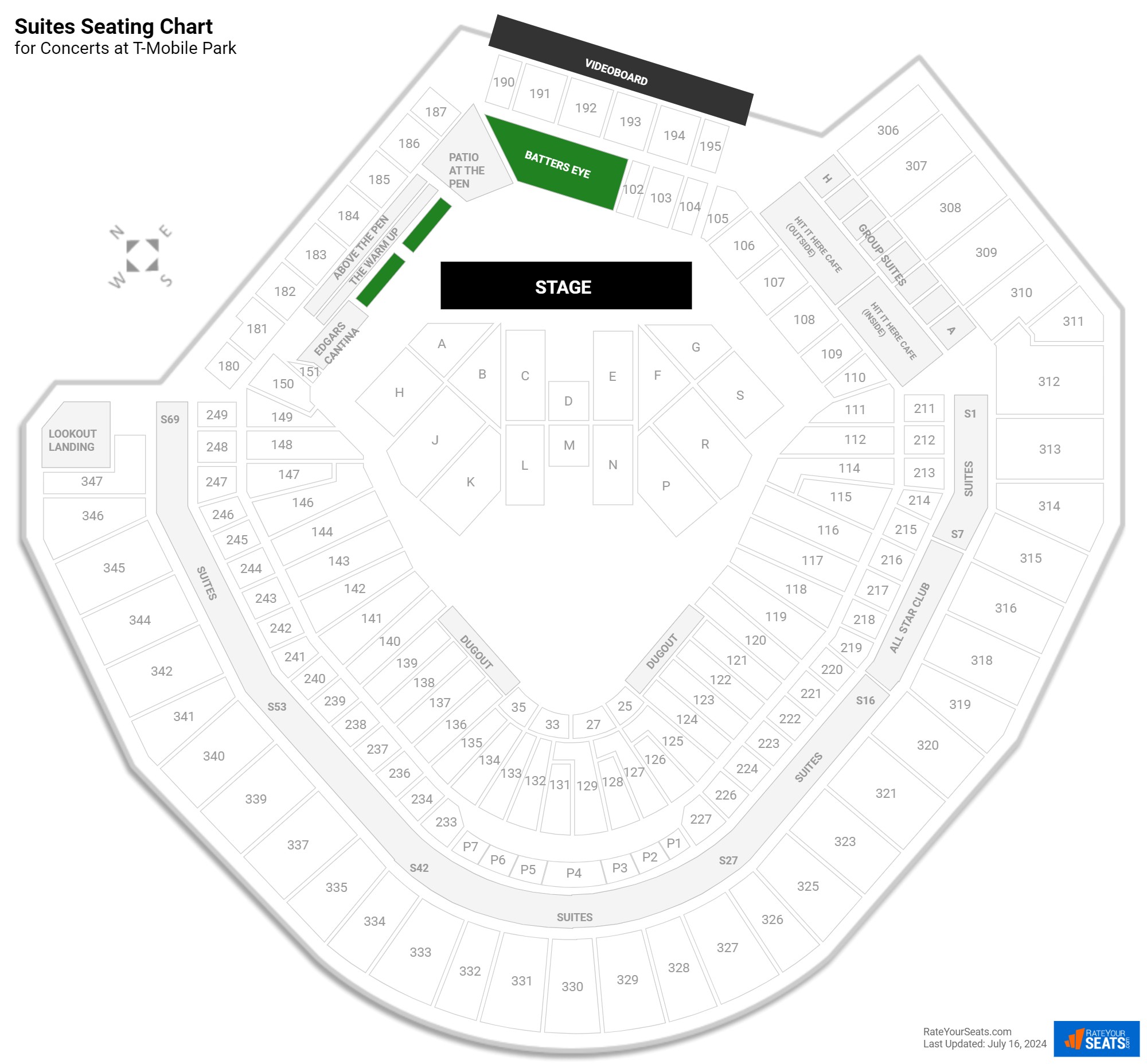 The Suites at T-Mobile Park are located between the first and third baselines behind the 200 level seats. Some of the amenities include: a private skybridge entry, dedicated suite attendant, and access to the Terrace Club and Mainers Game Room.