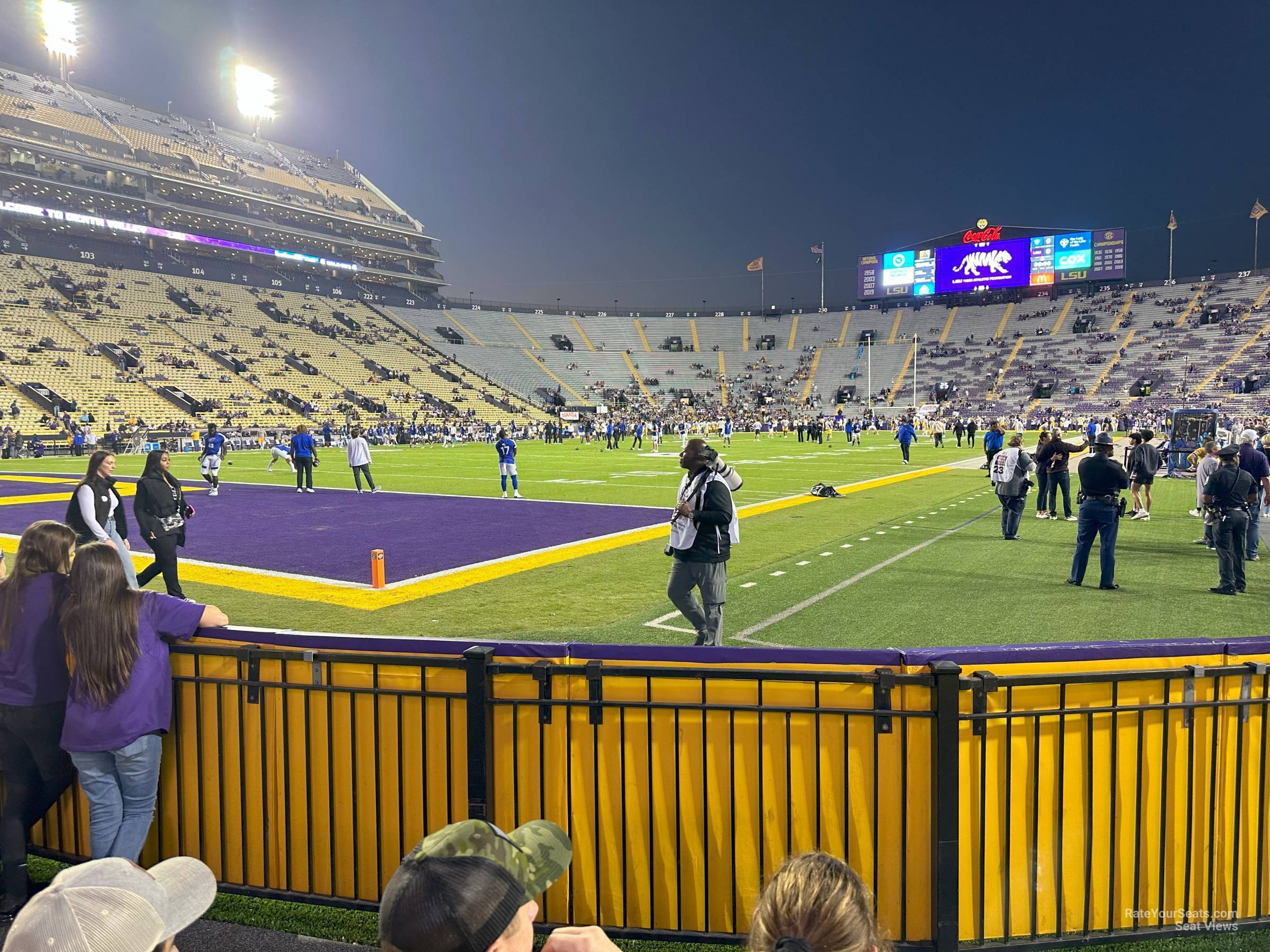 -Endzone Box Seats at Tiger Stadium are among the best options to catch a Tigers game. All seats are located just two rows off the turf making them some of the closest seats in the SEC. All seats have a chairback and are seated near an endzone. This can create lifetime memories as the Tigers make a scoring drive. When looking at the Tiger Stadium seating chart, all Endzone Box Seats will have a "B" at the end of the section number. Downside of Endzone Box Seats While these seats can be some of the most exciting options, they can also have difficult views due to the lower seating height. Sections closer to the sidelines will struggle to see over the team sidelines to the opposite end of the field, so we recommend searching in the sections closest to the uprights for a clearer, all-around view.