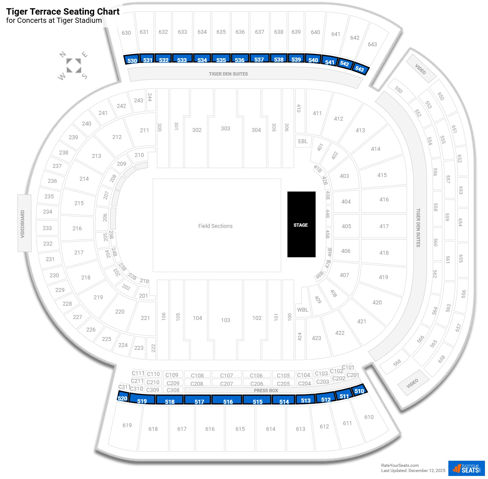 Tiger Terrace Seating Charts