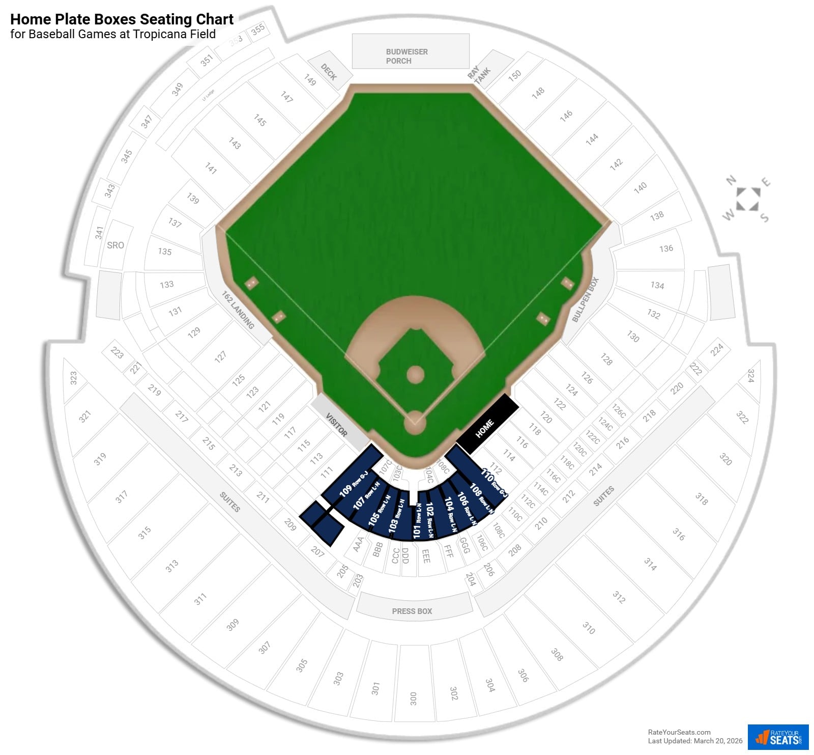 Home Plate Box seats at Tropicana Field are ideal for Rays fans who want a premium lower-level experience with added comfort and included food and drinks. These seats are a great option for fans who want to sit close to the action without paying top-tier Home Plate Club prices.