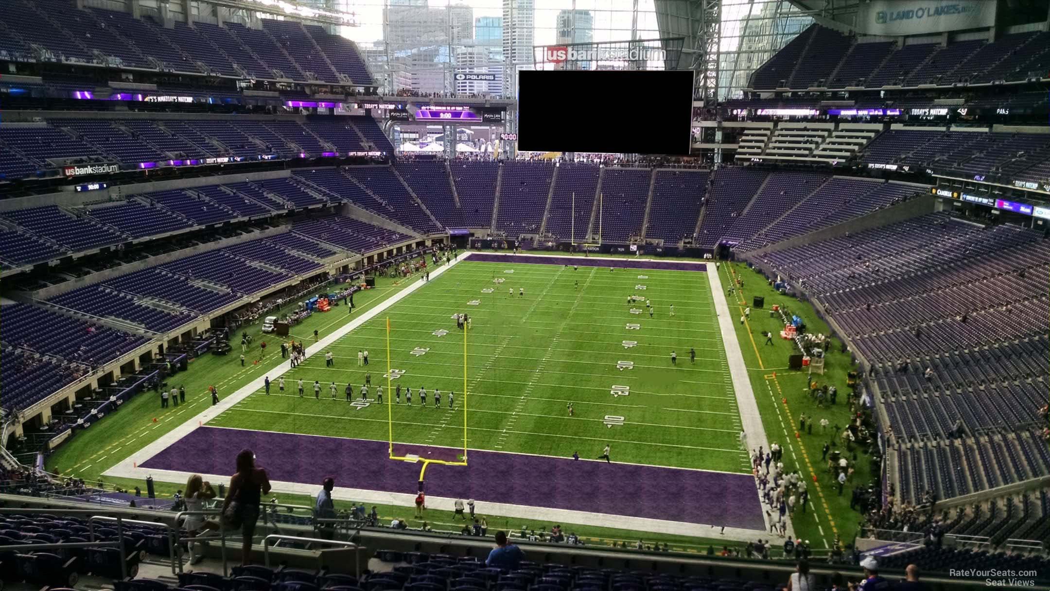 -Comprised of just 3 seating sections (222-224), the 200 Level Endzone seats are the only spot where you can find a pure behind the endzone view on the second tier of seating at U.S. Bank Stadium. The viewing height is second to none from the 200 level, and fans here will have a truly comfortable experience all around. Viewing angles to the field require little to no head turning at all, while you also get to look straight ahead at the larger west endzone videoboard and the glass entrance which features a stunning view of downtown Minneapolis. Each section features no more than 18 numbered rows of seating in each with entry tunnels located near the front at row 3. If you're a fan who doesn't like climbing over others to reach your seat, opt for section 224 which has no more than 6 seats in each row.