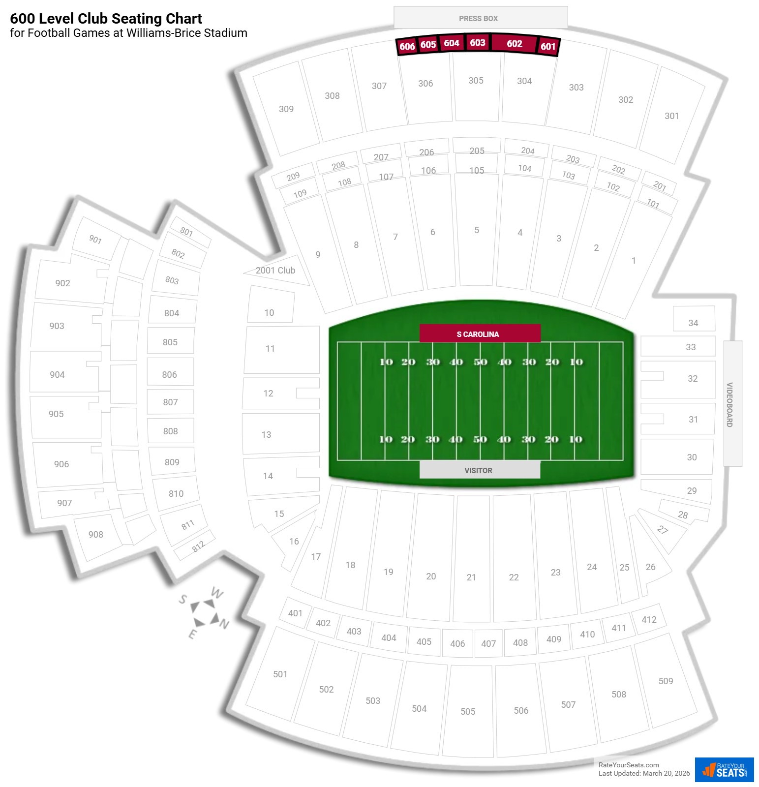 600 Level Club Sections