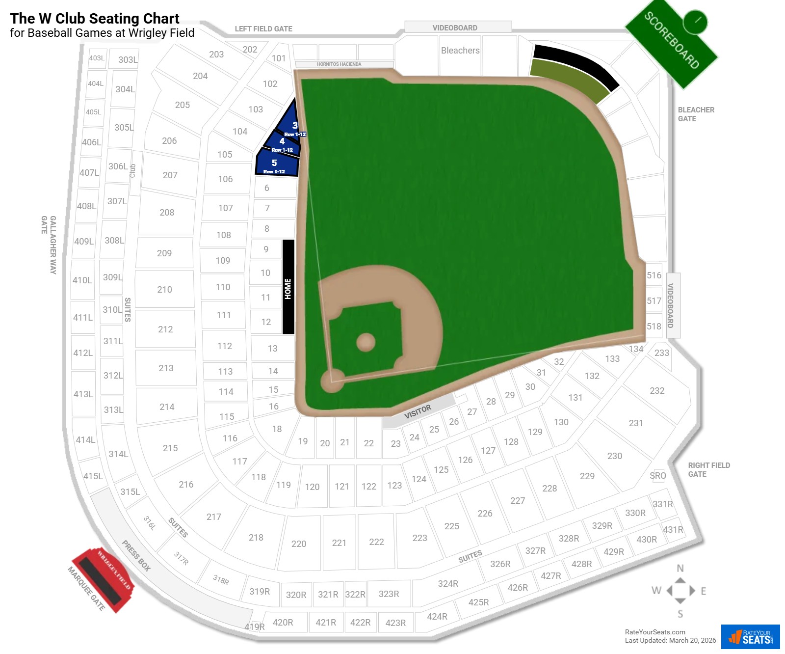 - Prime Left Field Location: The W Club seats occupy rows 1–12 of sections 3–5 down the left field line at Wrigley Field.