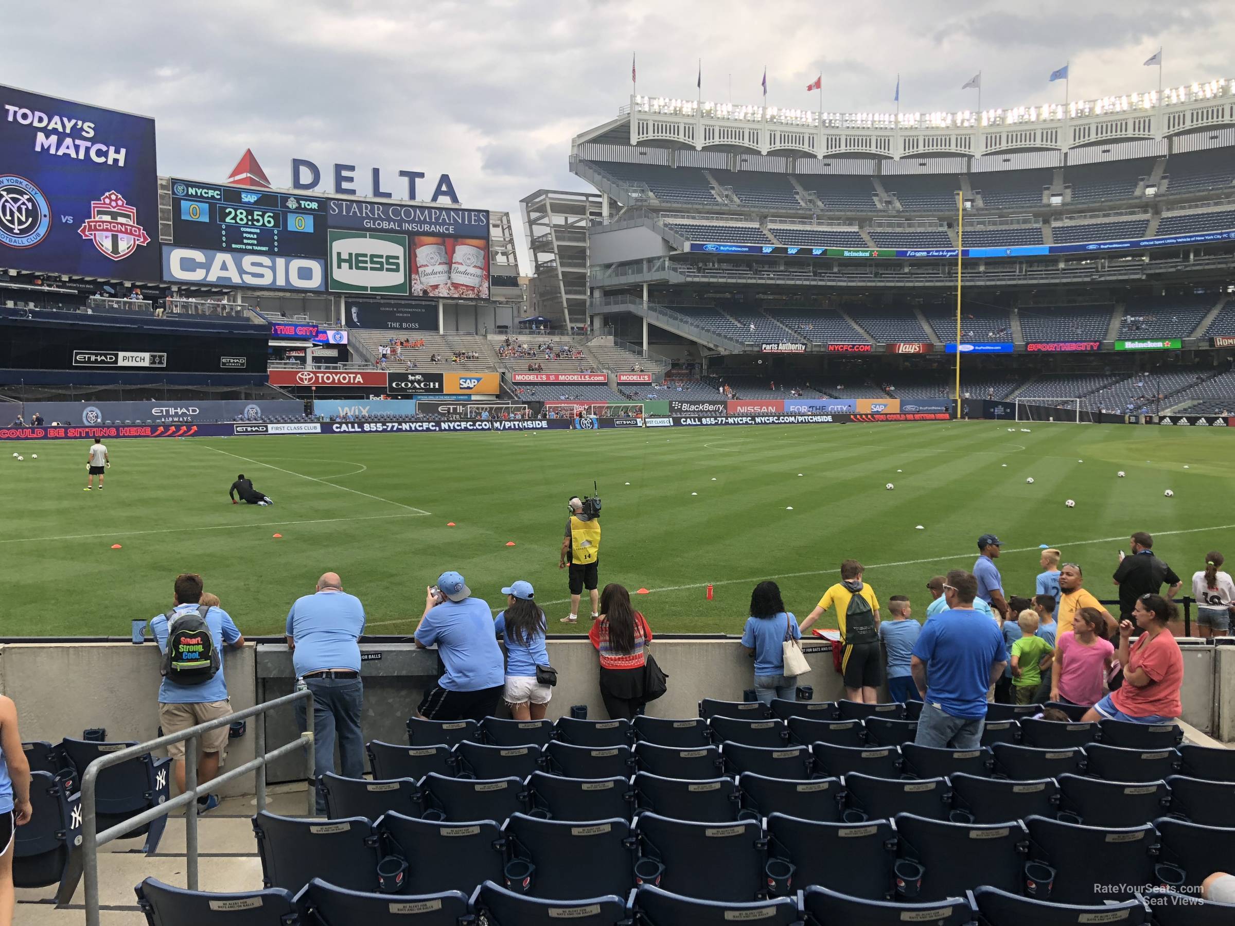 -Field Level seats at Yankee Stadium include all 100 Level sections and all sections numbered with two digits (e.g.: 11). About half of these sections are premium seating with access to the Legends Suite, Champions Suite or another exclusive space. Non-premium sections include 103-114B and 126-136. Yankees tickets in these sections are far less expensive than adjacent seats with similar views. The primary different is not having access to an indoor club with special benefits. For Yankees games, sections 103-106 and 129-130 might be an afterthought, but for soccer games, these seats are extremely close to the pitch and offer a unique perspective of the match.