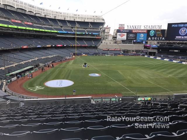 -The Yankee Stadium seating chart lists sections 205-217 and 223-234 as Main Level seats. These sections hang directly over Field Level seats. Some of the Best Views at Yankee Stadium For Yankees games, these seats offer some of the best views in the ballpark. Because they hang over the lower level, they are much closer to the field than you might expect. In fact, if you're seated in one of the first few rows near the infield, you can't even see the lower level seats. For soccer games views are a little more hit or miss. The elevation is ideal, but the angles to the field aren't always great. Sections 227A-231 have the best angles to the pitch. Which is the Best Row to Sit In? We recommend skipping the first couple rows because we've found that some views are slightly obstructed by signage and railings. These rows also require a decent hike up and down the stairs. The highest rows are closest to the concourse and are underneath the overhang. These are a great choice for kids and families who like to be close to amenities while staying out of the sun.