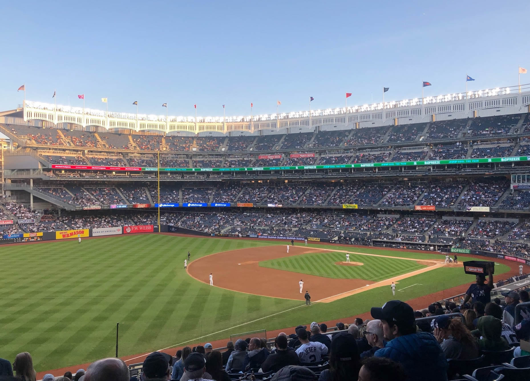 -Outfield seating on the Main Level includes seating down both baselines and wrapping into home run territory. Yankee Stadium is among the most homer-friendly parks out to right field. As such, sections 205, 206 and 207 get littered with home run balls. If you do choose to sit there, make sure to bring the shades and a hat during a day game -- the sun will be beating down on you all day. For a slightly more comfortable afternoon, choose seating in Sections 233 or 234, which are less likely to be in the sun and are close to men's, women's and family restrooms. If sitting in 210, 211, 228 or 229, be prepared to turn your body to watch the action on the infield -- the angle towards home plate is quite poor. Each section has up to 23 rows, and rows 15 and above will give you a pretty good chance of being protected from the sun (except in right field).
